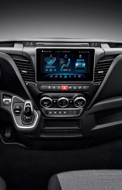 Der Daily hebt sich durch sein serienmäßiges 10 Zoll großes Kombi-Instrument von der Masse ab. Die Informationen zum Fahrzeug werden übersichtlich und in großer Schrift auf dem Breitbild-Display dargestellt. Fahrer haben die Wahl zwischen drei Designs, die sich per Schalter ganz einfach umstellen lassen. Bei Modellen ohne Infotainment oder DAB Radio wird die Ansicht der Rückfahrkamera angezeigt, wenn der Rückwärtsgang eingelegt wird.