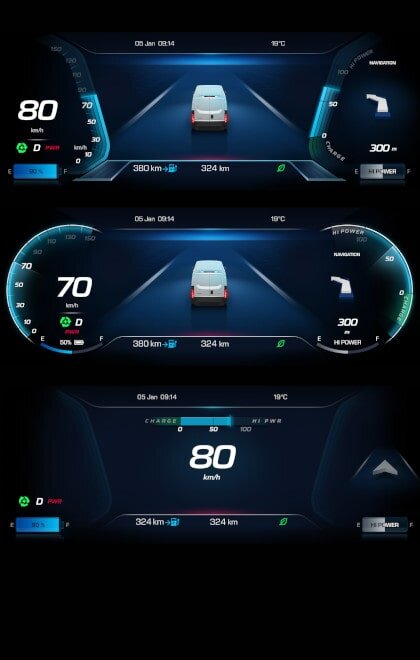 Neues Armaturenbrett für Energiemanagement und Fahrzeugdaten in Echtzeit.
